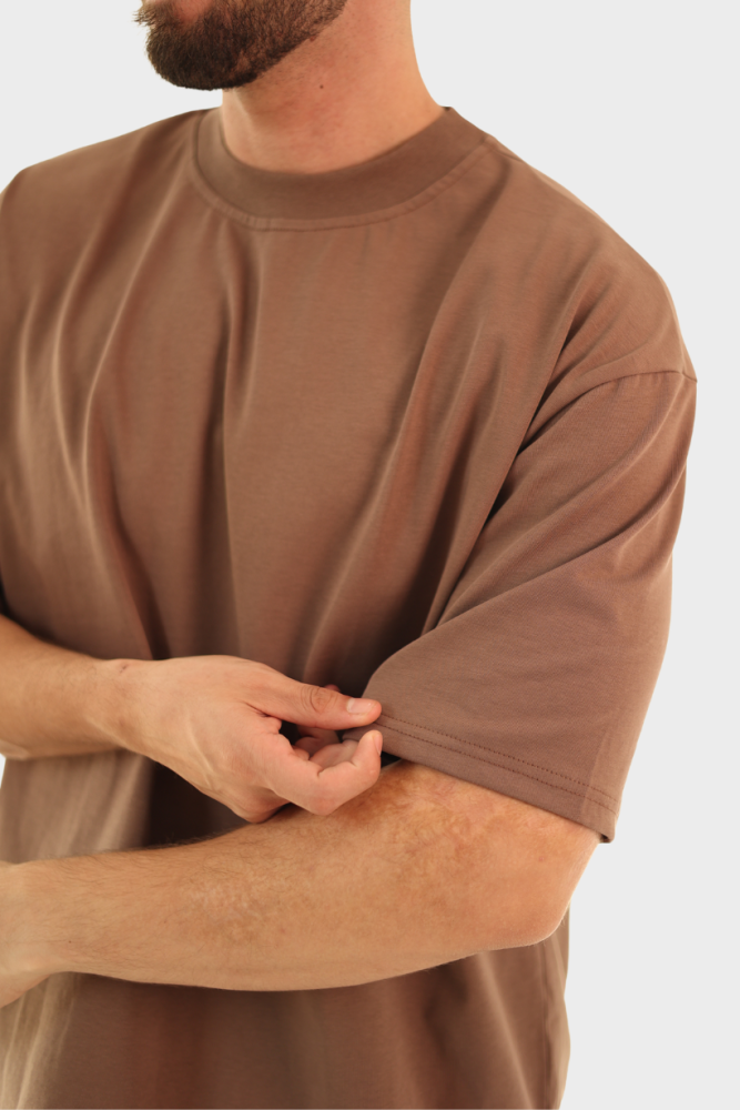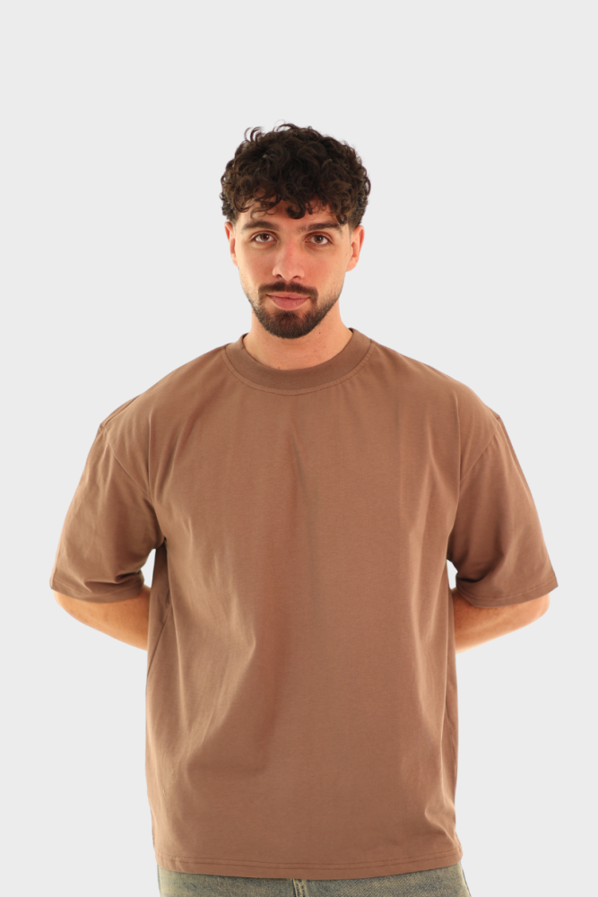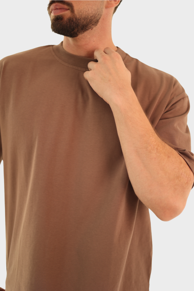 تيشيرت بيسك أوفرسايز – بني كاكاو (Cocoa Brown)
