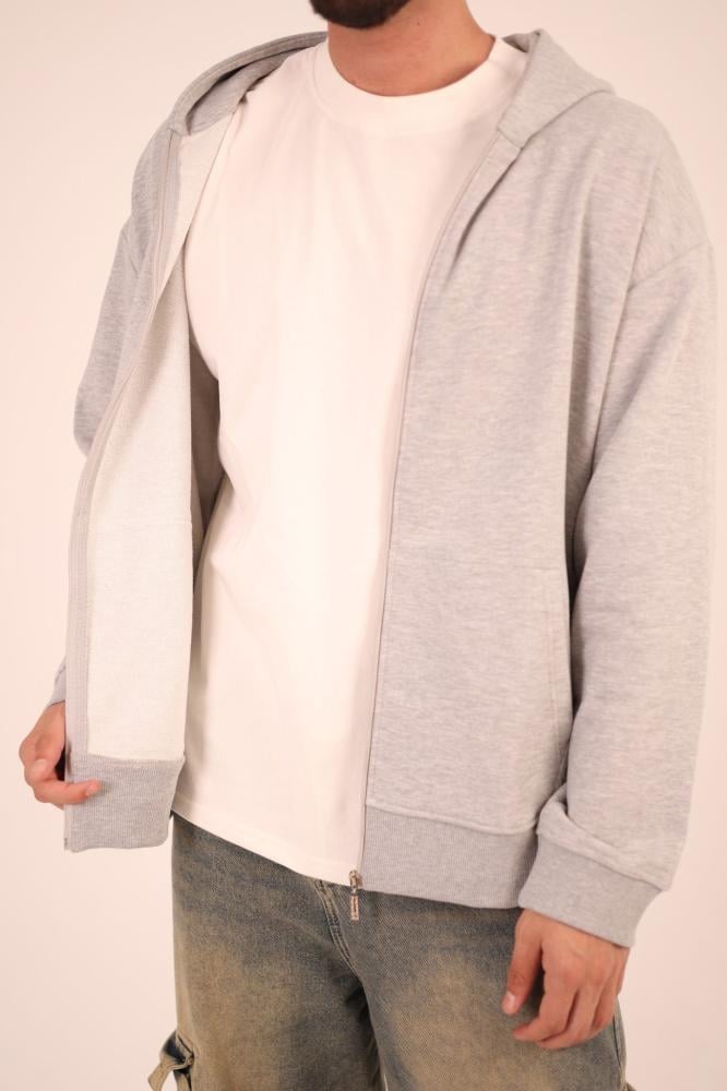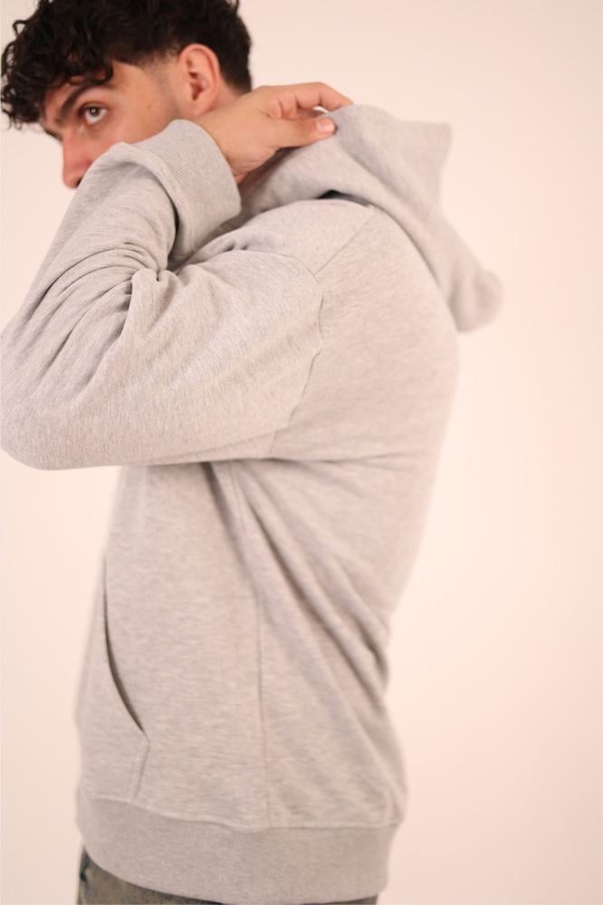 سويتشيرت بيسك زيبر بلون رمادي Heather – راحة يومية مع لمسة أناقة بسيطة.