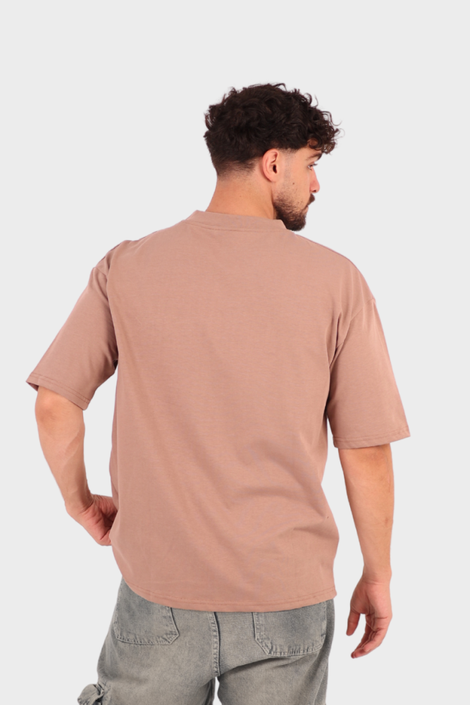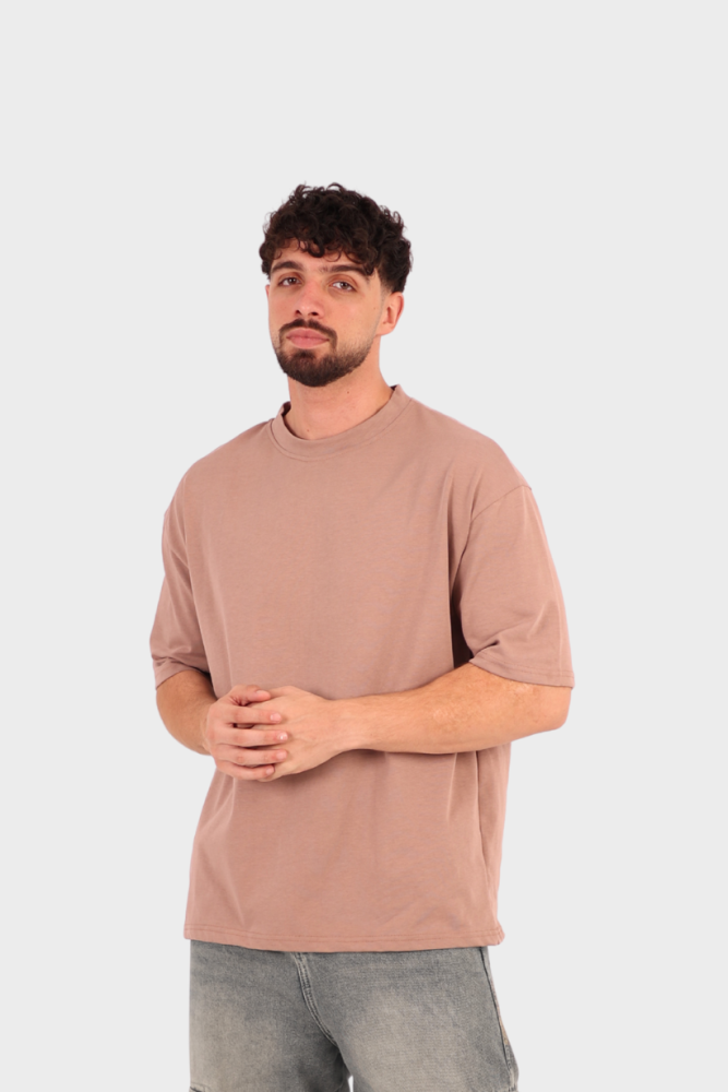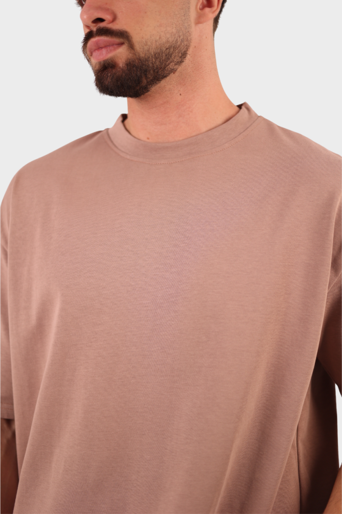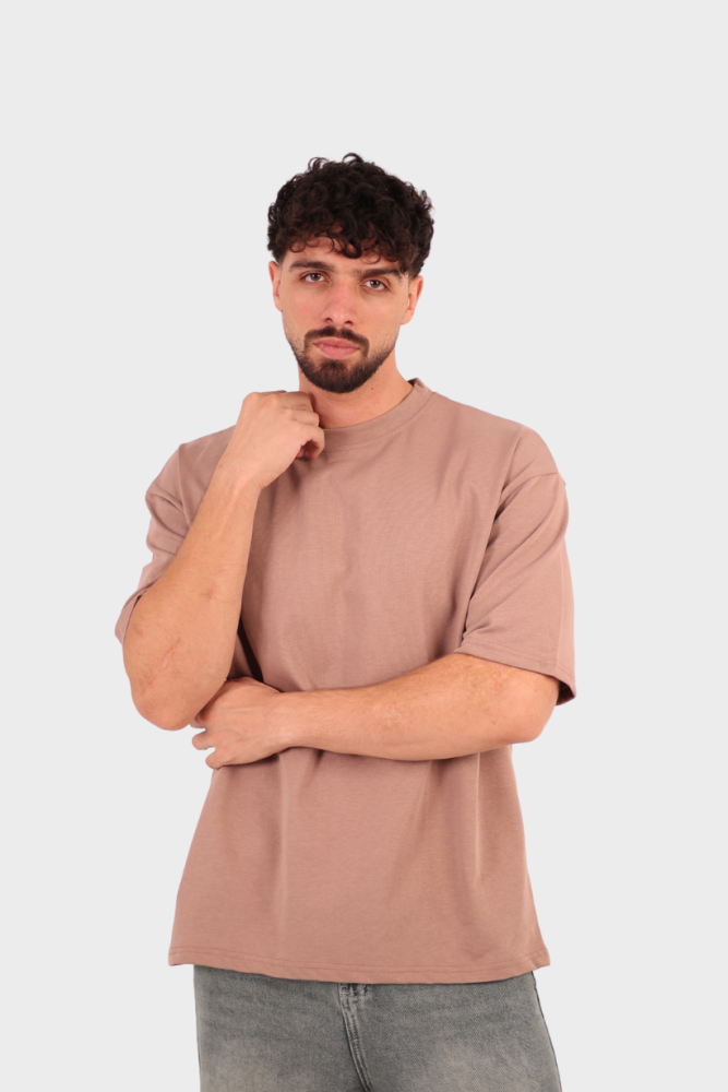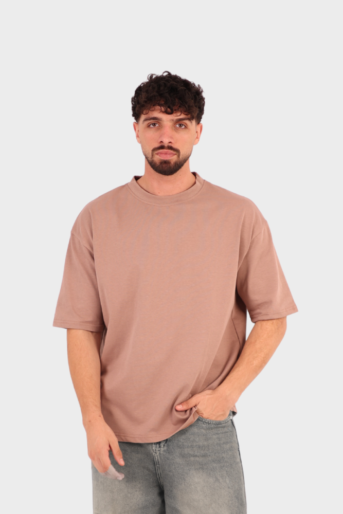 تيشيرت بيسك أوفرسايز بلون بني دافئ (Hushed Auburn)، مصنوع من قطن 100% فاخر، ناعم على البشرة وتنفس، يخليك مرتاح طول اليوم.