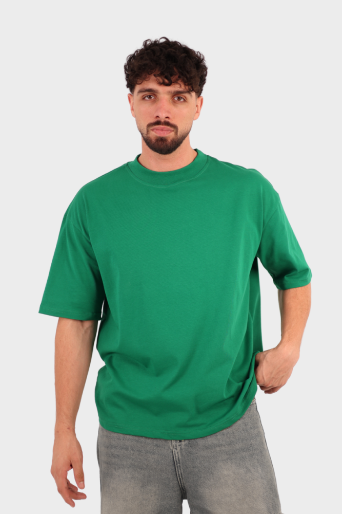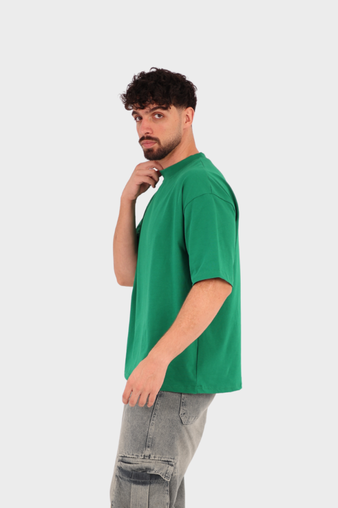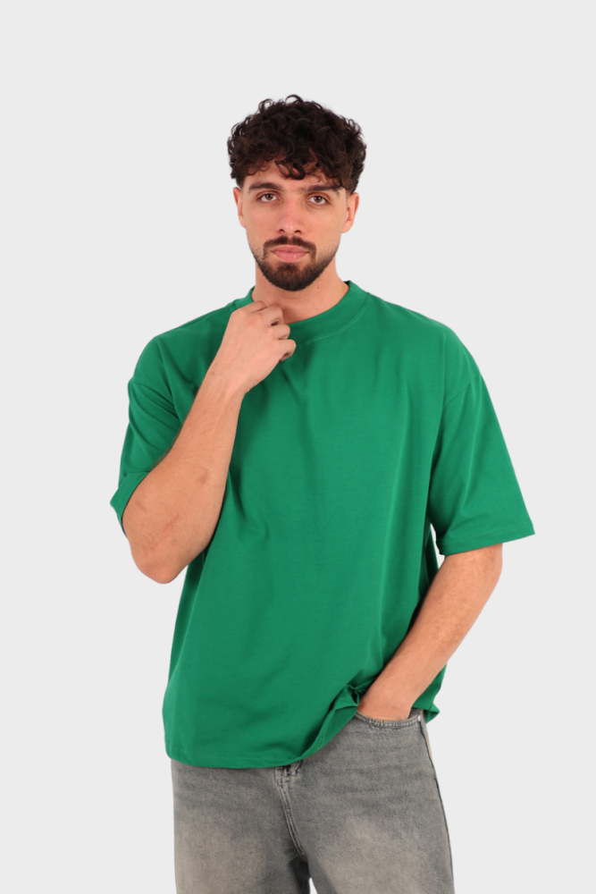تيشيرت بيسك أوفرسايز بلون أخضر زمردي (Emerald Green) — قطعة أساسية تضيف لمسة عصرية لدولابك.